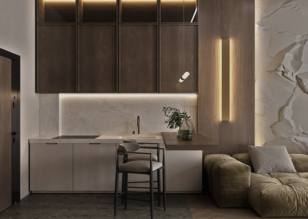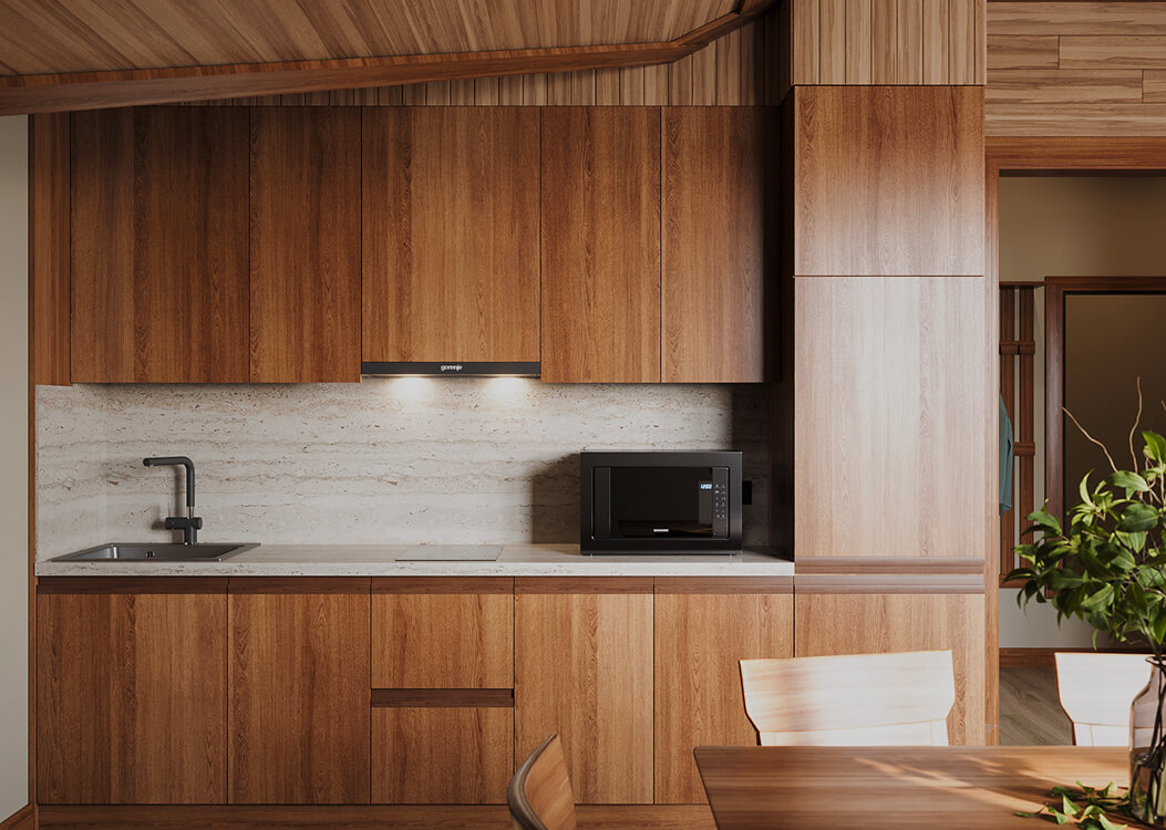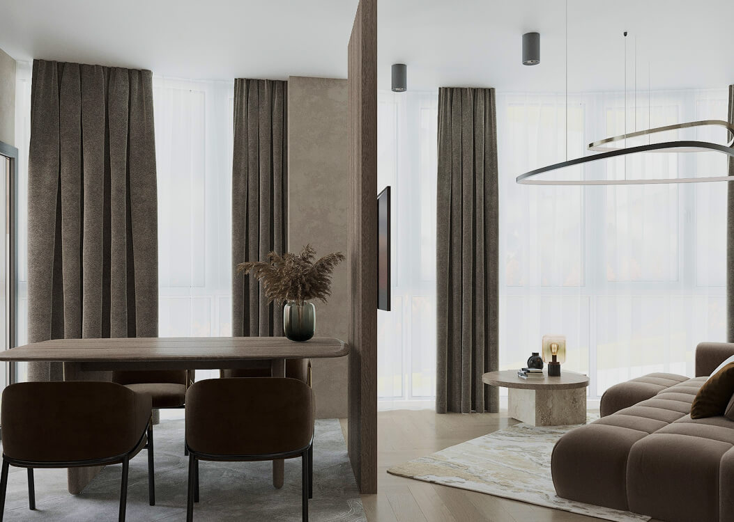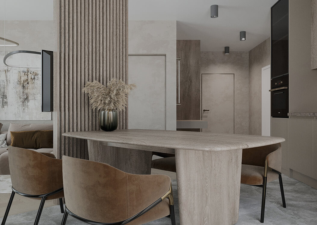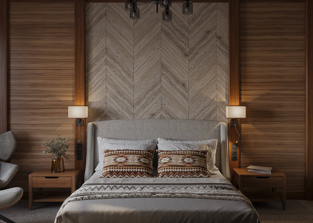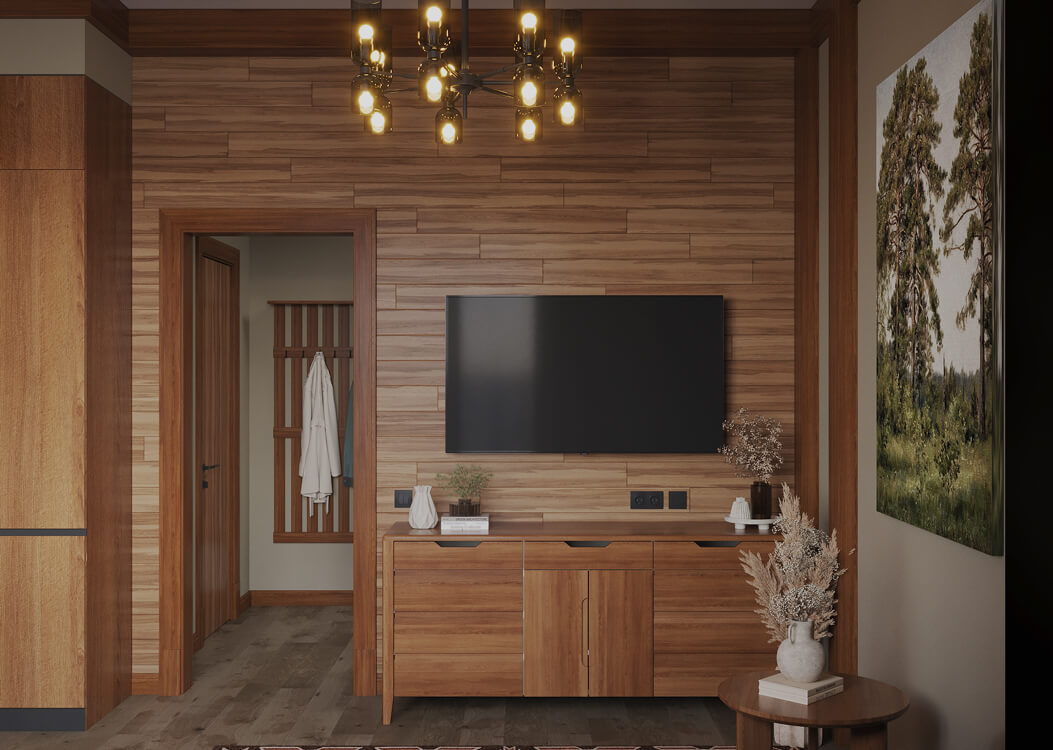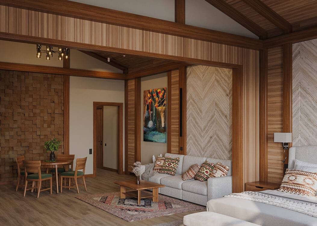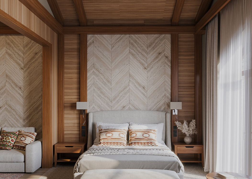Интерьеры созданы в гамме натуральных природных материалов: дерева и камня