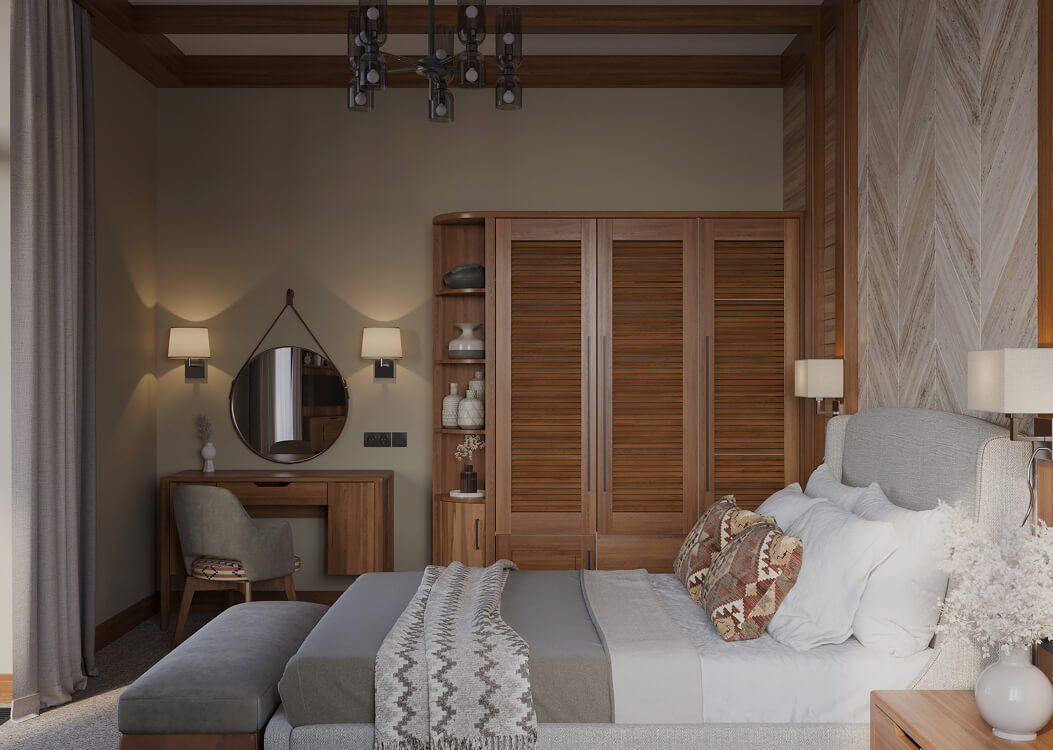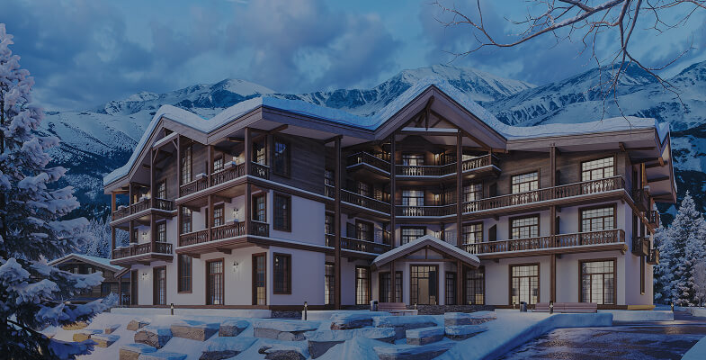 Комплекс спроектирован в стиле классического шале с использование исключительно премиальных и натуральных материалов. В проекте нет случайных решений или компромиссов – только продуманные детали, современные технологии и безупречный вкус.